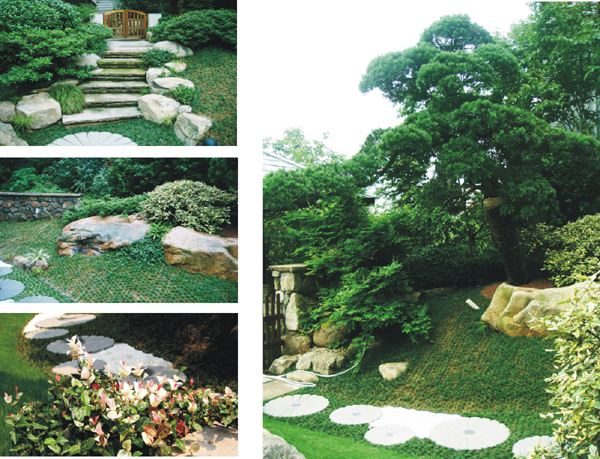 平面圖 1.庭院地理位置與現狀 1.1庭院現狀 蘇黎士小鎮別墅區位于蕭山湘湖景區風情大道旁,是典型的山地別墅區。此私家庭院處于小鎮北入口。總用地約1000㎡,其中庭院花園約600㎡。地形高差達3米以上。總體設計需要解決高差、統一室內和室外景觀。業主要求充分利用別墅地下層空間,與室外庭院相融合。同時萌生了許多難題:開挖、防水、排水等系列問題。但在合理的設計和施工操作中,最終把難以處理的個點創造出景觀亮點。 1.2設計前期與定位 設計者與業主多次探討,憑借對江南文化深厚的生活體驗與傳統造園廣受歡迎的特點,依據別墅區的建筑風格的現狀以及業主的實際使用功能,將庭院風格清晰的定位在借鑒日式庭院風格,增加現代使用功能。接下來的溝通更多的是圍繞如何結合地形與景點的空間形式,尋求可以實現的設計手法,總體上要求景點、材質、造型、手法都富有新意。