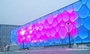 為了實現為“水立方”裝上“大眼睛”的目標,路明集團召集技術人員多次研討,經過嚴密論證,把這個項目的解決方案濃縮為一個字——“幔”。