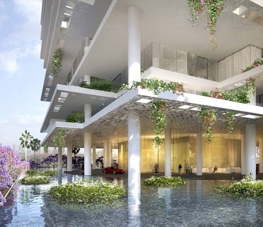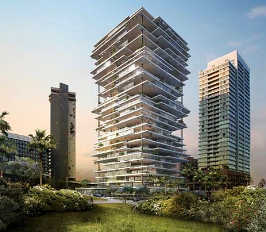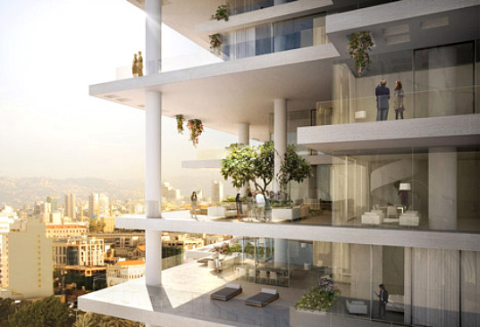 一項源自貝魯特(黎巴嫩一港口)沿海城市復原計劃的城市規劃愿景圖展示了這種開放式、層疊式的公寓兼花園概念性建筑物。這棟概念建筑將來可能設置在貝魯特的中心市區(不知道是不是地鐵上蓋?)。并且,它的設計理念也是包括充分吸收太陽能、對流的空氣等,為你提供舒適優越的居住體驗。