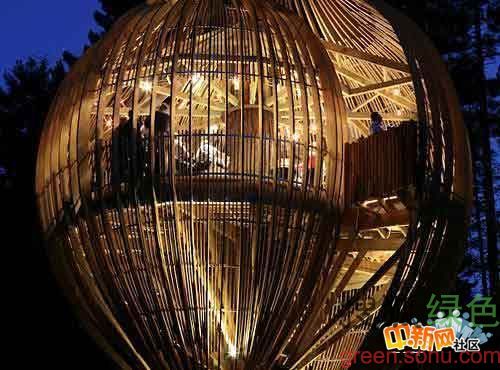 16.掛在樹(shù)上的餐廳,新西蘭。這個(gè)不尋常的餐廳理念起初是給新西蘭某公司做廣告,餐廳所用的原材料都來(lái)源于該公司。餐廳位于新西蘭奧克蘭北部沃克沃思的一棵紅杉樹(shù)上,離地面30英尺(9米)。
