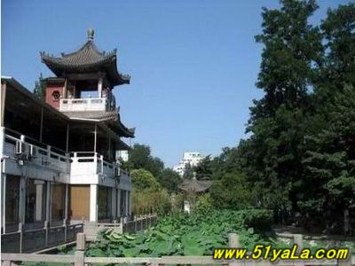 位于西安市蓮湖路南,坐落在唐代宮城承天門遺址上.明代秦王朱爽(朱元璋次子)取其高低不平地勢,引注通濟渠水,在此建王府花園。因開鑿人工湖,廣植蓮花,名叫“蓮花池”。清康熙七年(公元1668年),巡撫賈復漢主持疏竣池泥,并改名“放生池”。1916年辟為蓮湖公園。經逐步建設,公園環境優美,游樂景點增多,設施不斷完善。公園北門為傳統建筑,古樸典雅。園內水面分成南北兩湖,南湖水深較大,可蕩舟游覽;北湖水淺較小,皆種蓮植藕。北湖旁有“荷院”,建筑高低錯落,中有荷池。北門內東側有棋院和“小蘿卜”塑像。南湖岸西有茶社和八角亭。承天閣為園內主要建筑,此外有圖書樓和兒童游樂場等。