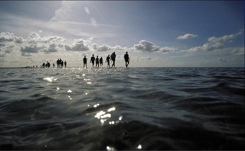 瓦登海,丹麥。瓦登海是上一次冰河時代形成的低洼淺海區(qū)。游客們蜂擁而至,體驗“海上行走”的感覺。瓦登海地區(qū)的地表不斷由海水和風(fēng)力塑造然后破壞,形成新的沉積物。但是如果海平面上升的速度超過預(yù)期,將缺乏足夠的沉積物來重塑陸地。