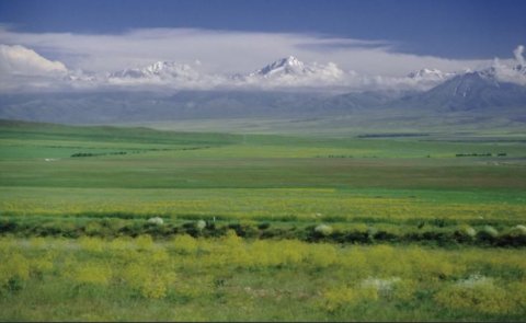 哈薩克斯坦天山(西端)。天山腳下的農牧業早在3000年前就已經興起,中亞的農牧民世代依賴山上冰雪融水從事生產。但在過去的50年里,天山上的冰川已經融化了36%。如果氣溫繼續升高,當地將會出現水源匱乏,這種情況與人口增長帶來的用水需求增長相結合,將引起嚴重的危機。