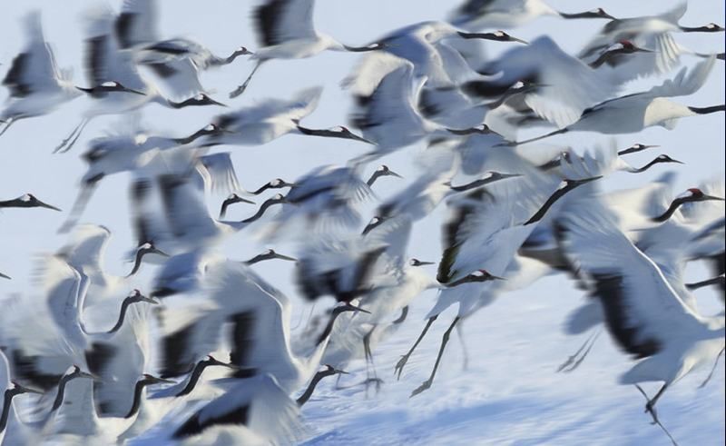 日本釧路濕地。在北海道的釧路濕地生活著1200只丹頂鶴,丹頂鶴是世界上第二珍惜的鶴類動物,它們在此繁衍、徜徉、舞蹈(求偶)。隨著大規模人類開發、森林采伐和海平面的上升,釧路濕地日漸萎縮,丹頂鶴的生存空間也隨之縮小。