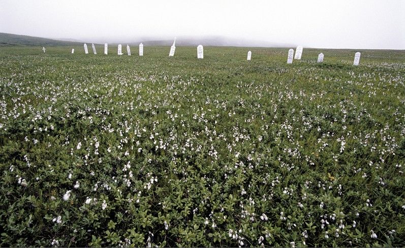 加拿大,波林海灣。離開阿拉斯加大陸,早期人類遷移的痕跡還可以在這里的野外尋覓。這里的凍土層非常厚,但是夏季的時候并沒有想象得那么多的花和其他植物。當這里的溫度逐漸升高以后,越來越多融化的冰層意味著這里將會遭受海浪更嚴重的侵蝕。
