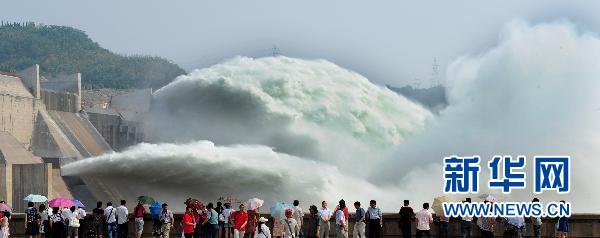 當日,黃河小浪底水庫第十次調水調沙進入第二天,單日調水調沙最大流量達到每秒5000立方米,黃河小浪底進入最佳觀瀑時間。當地舉辦的小浪底觀瀑節將一直持續到7月15日。 新華社發(高山岳 攝)