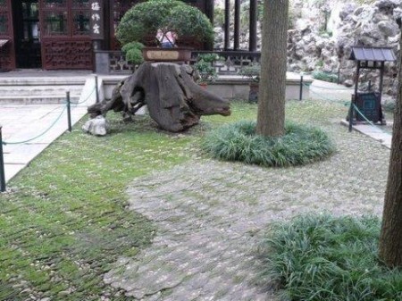 更有意思的是,東園牡丹廳是一座船廳,廳下以鵝卵石和小瓦片鋪成波浪紋,起伏有致,船廳的楹聯(lián)“月作主人梅作客,花為四壁船為家”,更有畫(huà)龍點(diǎn)睛的效果,令人不得不佩服設(shè)計(jì)者的巧思與創(chuàng)意。