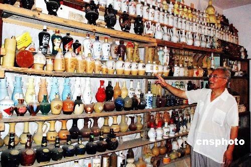 河南鄭州一位酒瓶收藏者在自家建成家庭酒瓶博物館。展示了他近30年來收藏的造型不同、大小各異的4000多個品種的酒瓶,數(shù)量上萬。