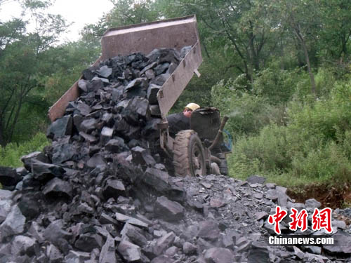 當地群眾介紹,唐莊鄉的嵩山山體都在嵩山世界地質公園范圍之內,由于長時間地開采,對保護區的地質破壞比較嚴重。唐莊鄉的開采主要集中在井灣村和塔水磨村,開采礦石的洞口多時有幾百個,現在不到一百個了,開采活動從來就沒有停止過。由于近段時間雨水較多,山上的路行車不便,開采出的石料運出困難,不然就會看到一些拉礦石的車輛。這些廠沒有合法的開采手續。